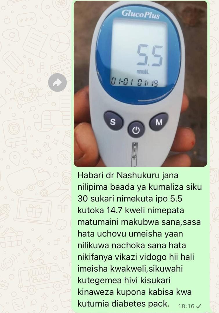 Baada ya siku 14, Ndugu yangu alianza kuona matokeo makubwa,kiwango cha sukari kilishuka