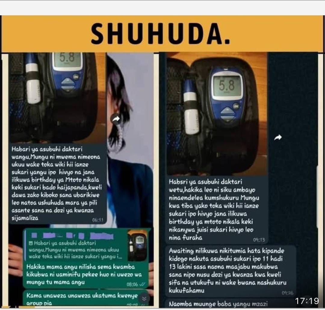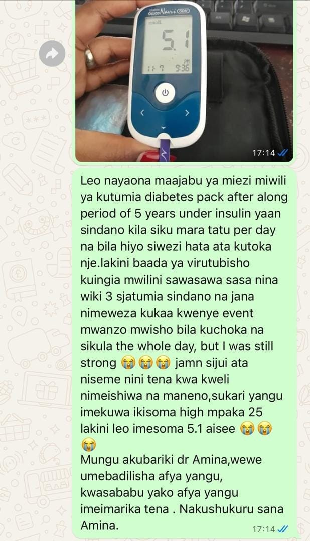 Yaan watu ambao wamepona kwa kutumia diabetes pack, wamekuwa mabalozi wazuri wa kuniletea watu wengi wenye changamoto hiyo .